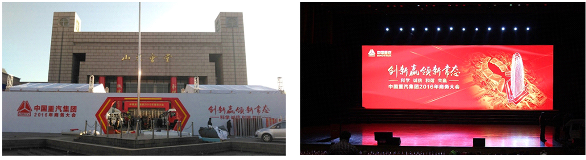 2015年12月,山東新視覺數(shù)碼科技有限公司承制了中國重汽商務(wù)大會的高科技新能源汽車多媒體展臺搭建項(xiàng)目,并得到了中國重汽以及在場所有觀眾的認(rèn)可和贊揚(yáng)。