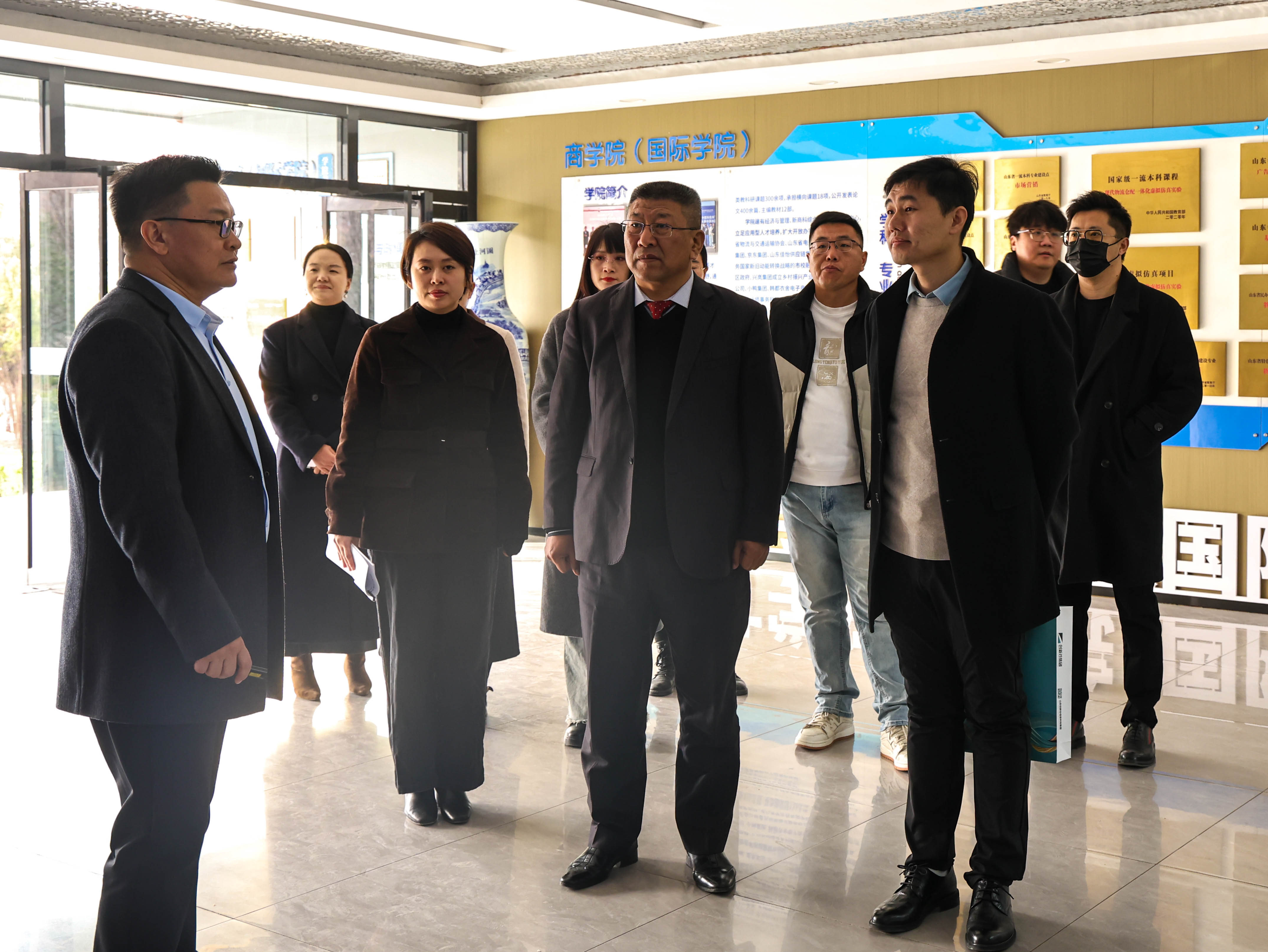 隨后,在山東英才學(xué)院王曉娜校長、崔奎勇校長的帶領(lǐng)下,我們走進(jìn)了商學(xué)院(國際學(xué)院)的實(shí)訓(xùn)現(xiàn)場?,F(xiàn)代化的數(shù)字媒體實(shí)驗(yàn)室里,學(xué)生們正專注于短視頻拍攝、直播帶貨等實(shí)操訓(xùn)練;專業(yè)的直播基地內(nèi),模擬直播間設(shè)備齊全,學(xué)生們分組進(jìn)行帶貨演練,展現(xiàn)出扎實(shí)的專業(yè)基礎(chǔ)與飽滿的實(shí)踐熱情。親眼目睹學(xué)院將理論教學(xué)與實(shí)操訓(xùn)練深度結(jié)合的教學(xué)模式,新視覺團(tuán)隊(duì)倍感振奮;高校的教育資源與人才儲備,正是企業(yè)發(fā)展所需的“源頭活水”。我們所深耕的數(shù)字電商運(yùn)營、短視頻策劃、新媒體營銷、宣傳片制作、工業(yè)動畫等領(lǐng)域,亟需這類兼具理論素養(yǎng)與實(shí)操能力的復(fù)合型人才,而英才學(xué)院的培養(yǎng)體系,恰好為雙方的合作搭建了堅實(shí)橋梁。